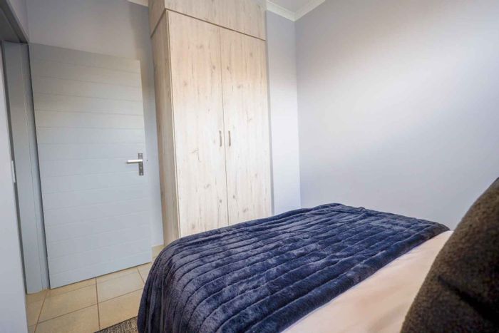 Live steps from Roodeplaat’s dam and roaming wildlife in Roodepark Eco City, enjoying a modern kitchen, private balcony views and two-bedroom, one-bath apartment with covered parking.