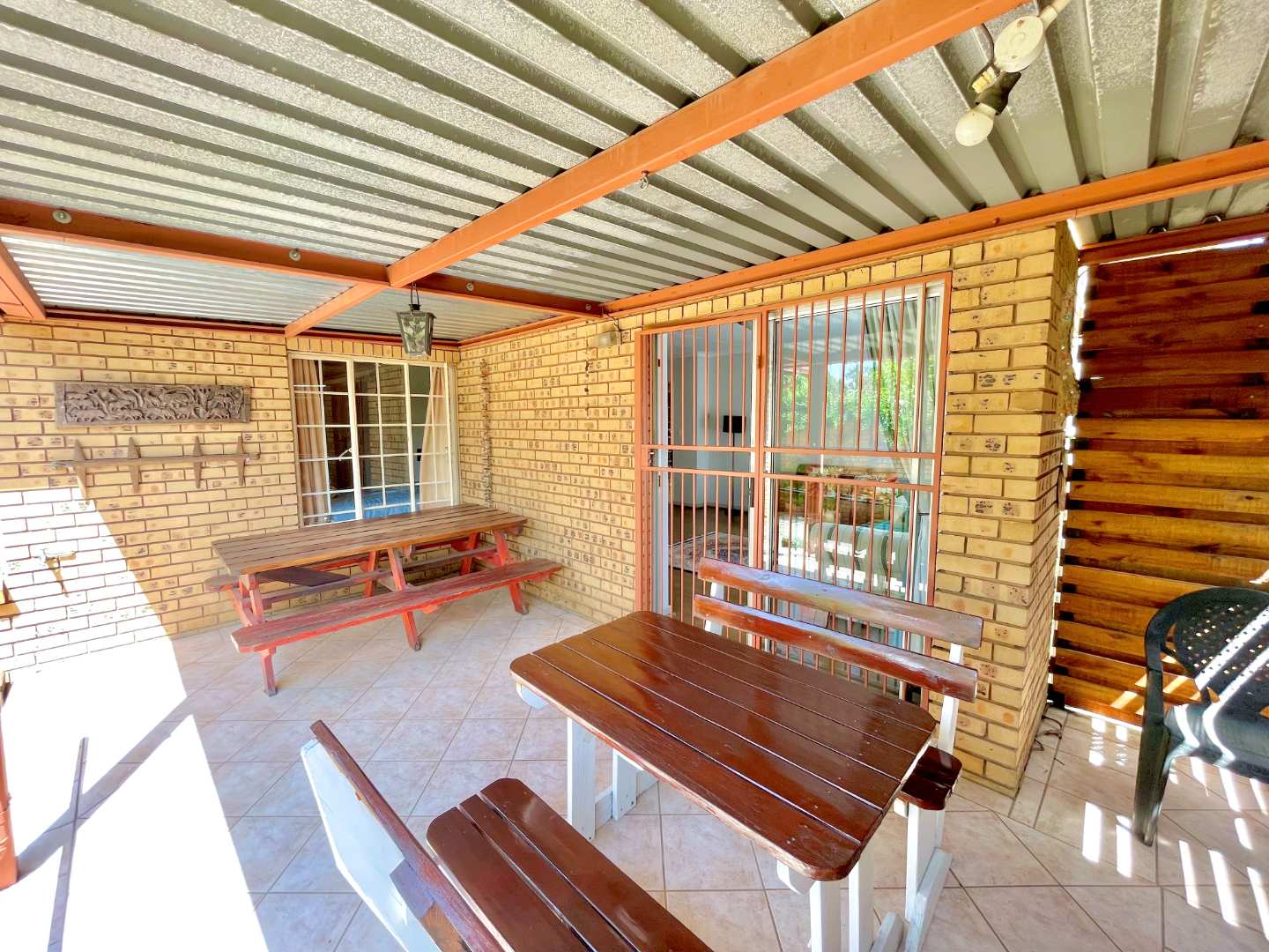 Step into a home that welcomes you with an abundance of natural light, creating a warm and inviting atmosphere throughout. The living areas and bedrooms feature laminate flooring, while the kitchen and bathrooms are equipped with tile flooring for practicality. The spacious lounge seamlessly connects to a charming stoep with a built-in braai, perfect for hosting gatherings or enjoying a serene evening outdoors. The generously sized dining area offers the flexibility for memorable family meals inside or alfresco on the stoep.