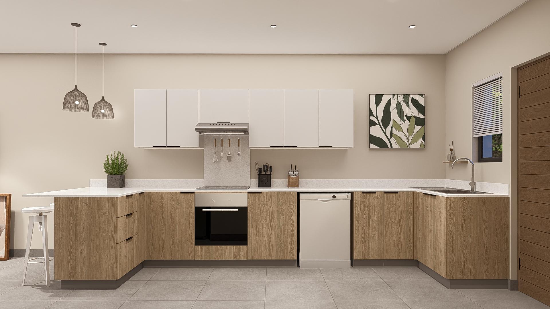 These homes feature two modern bedrooms and a full bathroom with exquisite finishes. Each unit is fibre-ready, and a prepaid meter is included for your convenience. The open-plan kitchen boasts sleek, contemporary finishes, including quartz countertops, and provides ample space to neatly accommodate all your appliances.