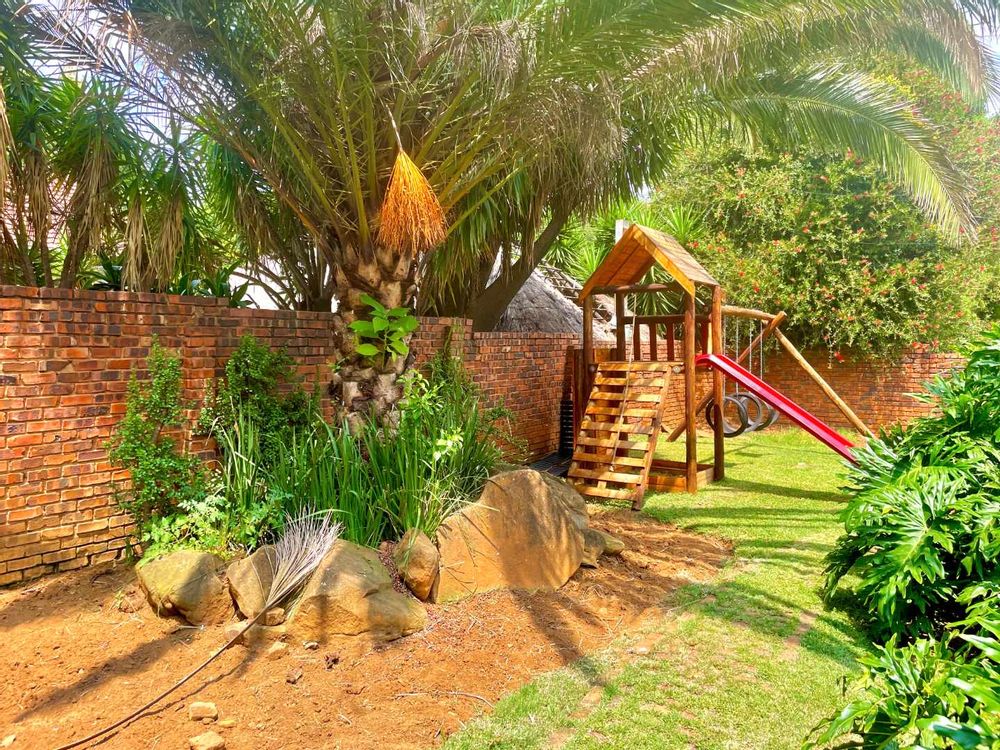 Welcome to this remarkable family residence, offering an impressive blend of space and comfort. The main house boasts four generously sized bedrooms, providing ample space for the entire family. Additionally, a private fifth bedroom is nestled in a separate flatlet above the garage, perfect for generating rental income, accommodating extended family, or setting up a professional home office. This self-contained flatlet features an open-plan living area, a kitchenette, a cleverly designed bathroom concealed behind a walk-through cupboard, and energy-efficient gas geysers.