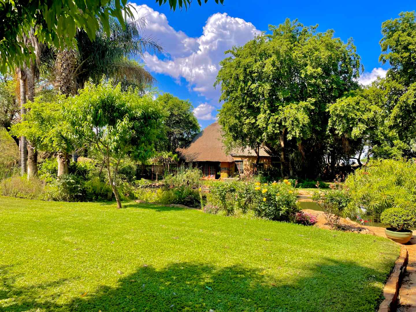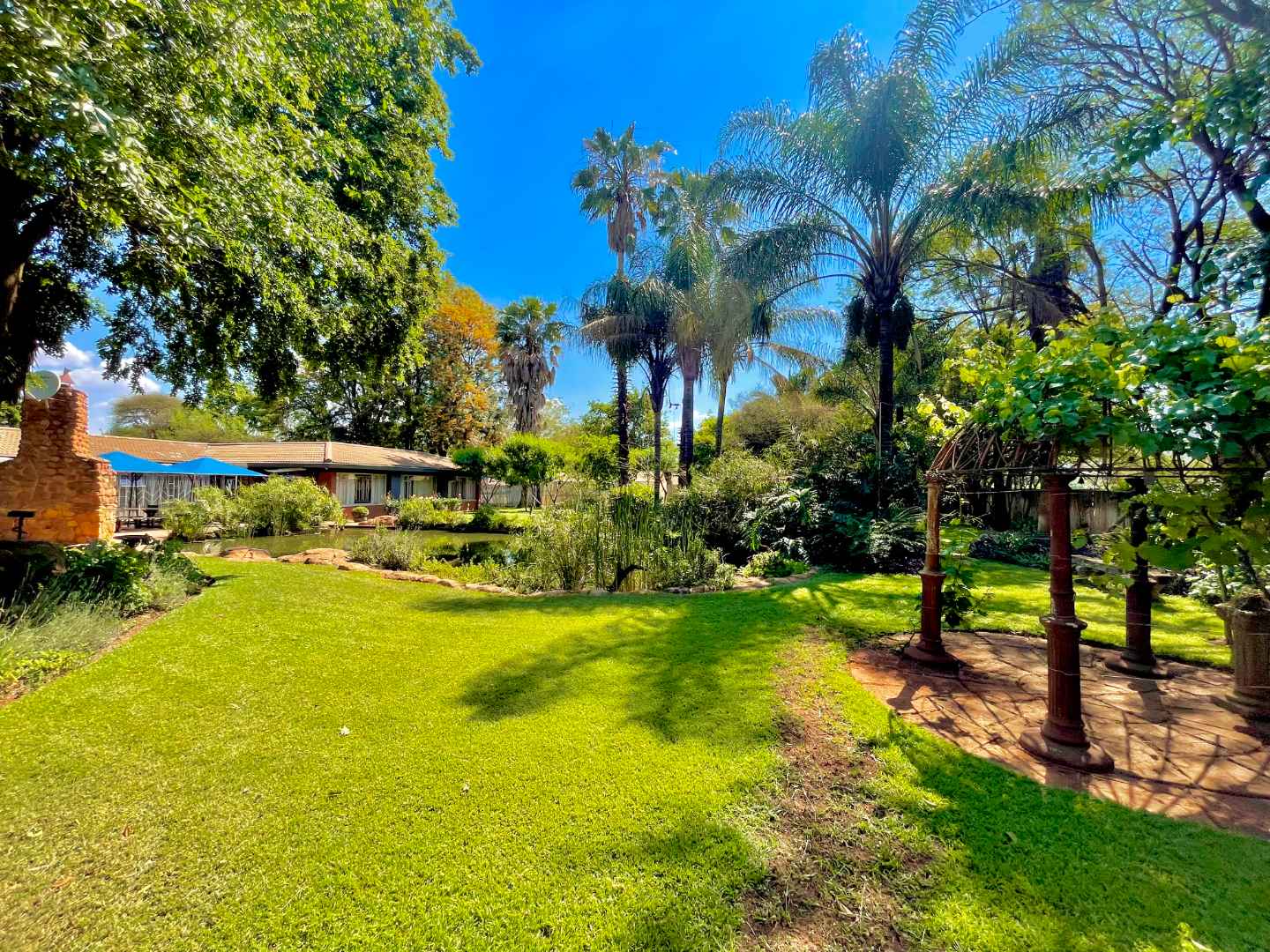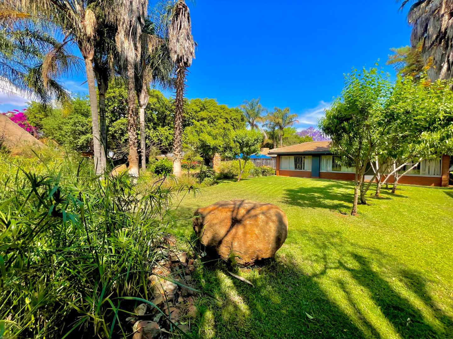 Fruit trees (peaches, granadillas, naartjies) and tranquil garden spaces