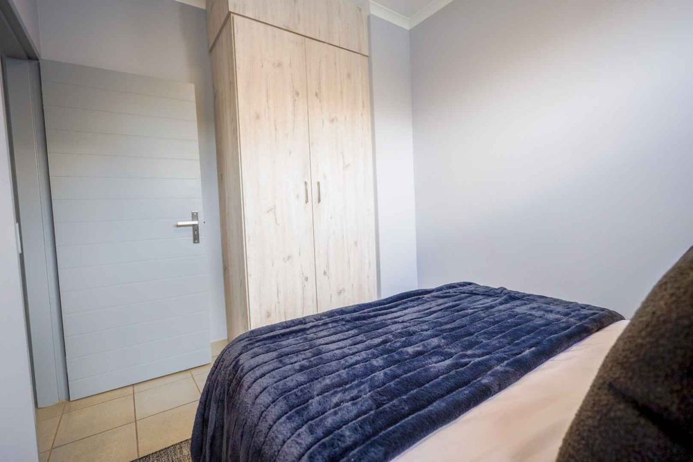 Designed with sustainability in mind, these sunny north-facing apartments come with solar back-up systems and are fitted with pre-paid electricity meters. Fibre internet is already installed in each unit (activation fee excluded), ensuring you stay connected. The low-maintenance design features aluminium windows and sliding doors, as well as tiled floors throughout. Each apartment includes a 100-litre geyser and a modern finish that exudes elegance.