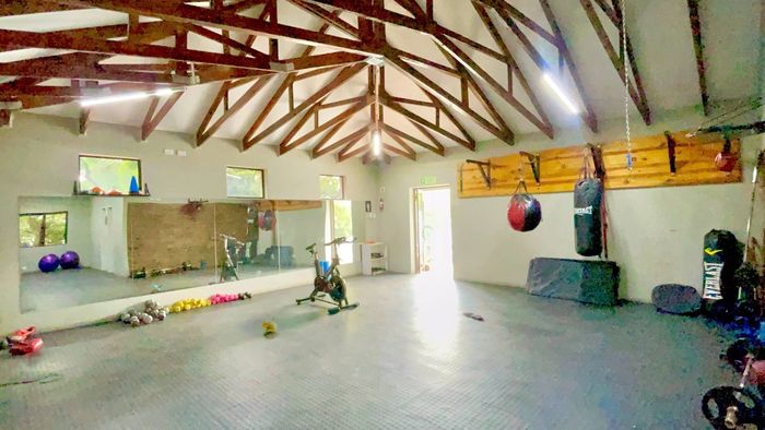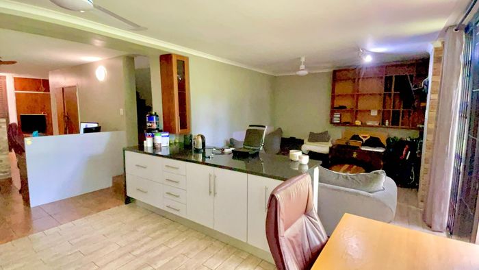 Entertainer's dream in Six Fountains Residential Estate—open-plan living flows to expansive under-roof patio with built-in braai and landscaped garden. 3 beds, 2.5 baths, double garage; estate dams and trails.