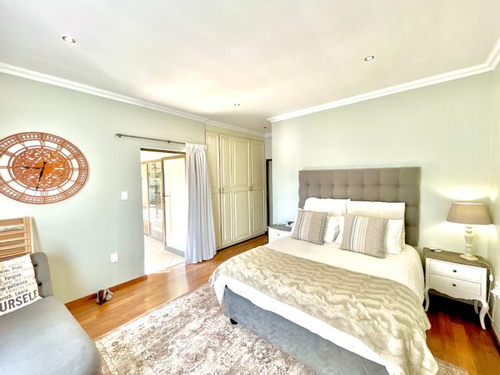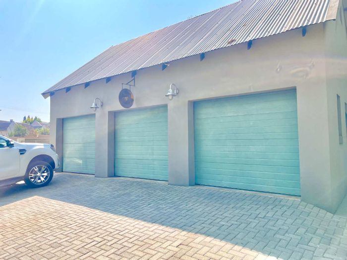 Enjoy country charm in Olympus Country Estate—corner stand with glass-entry, open-plan kitchen/scullery, stoep with built-in braai and garden for splash pool; 4 beds, 3.5 baths, 3 garages.