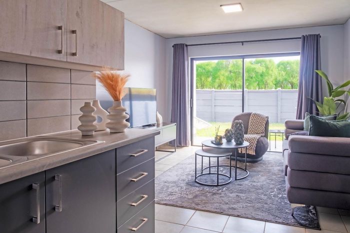 Live steps from Roodeplaat’s dam and roaming wildlife in Roodepark Eco City, enjoying a modern kitchen, private balcony views and two-bedroom, one-bath apartment with covered parking.