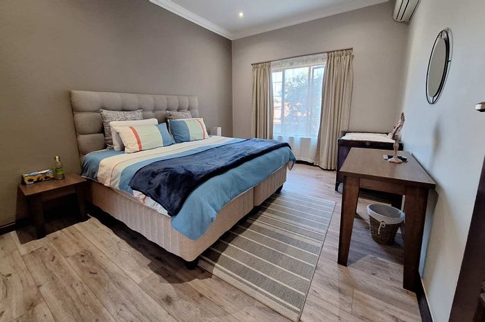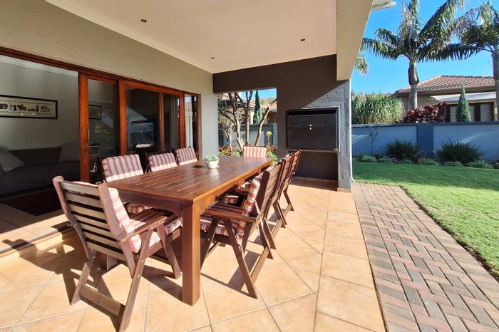 Executive living in Waterkloof Ridge near embassies and top schools, featuring a gourmet kitchen, expansive under-roof patio with built-in braai, private pool and robust security.