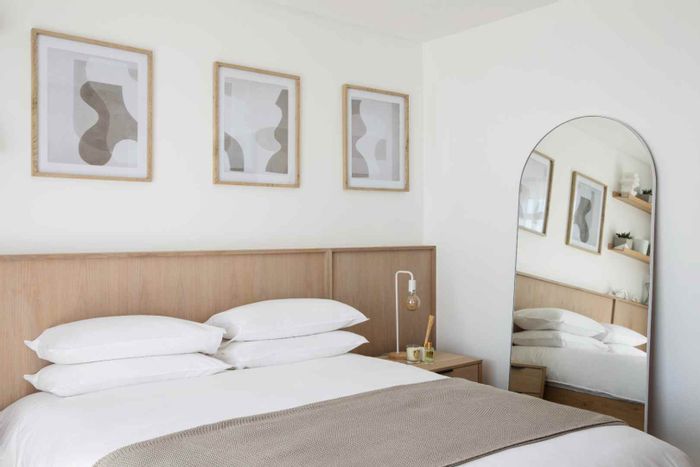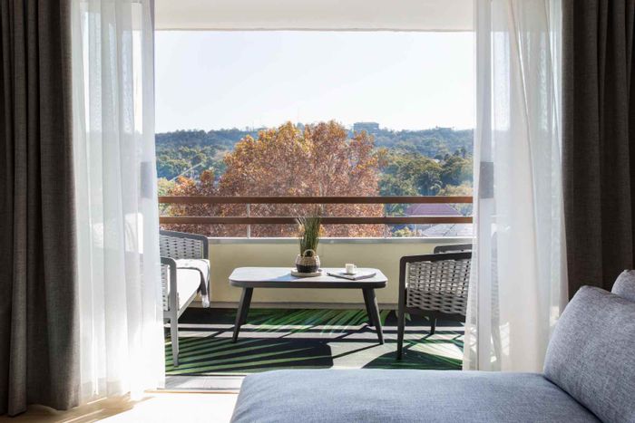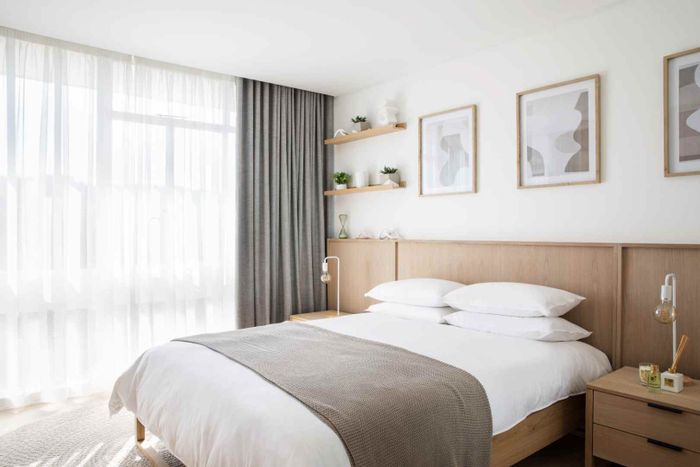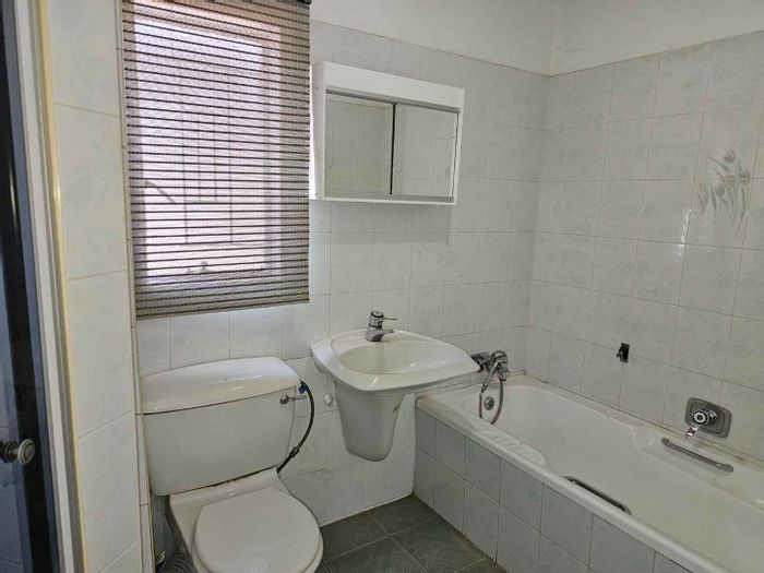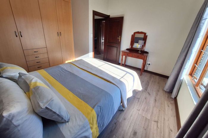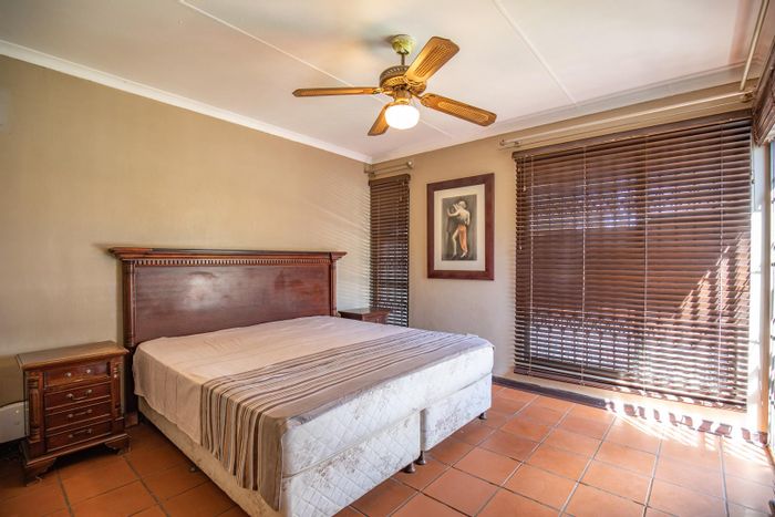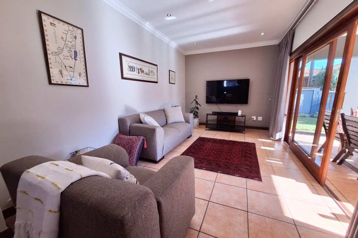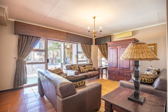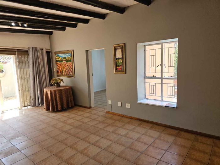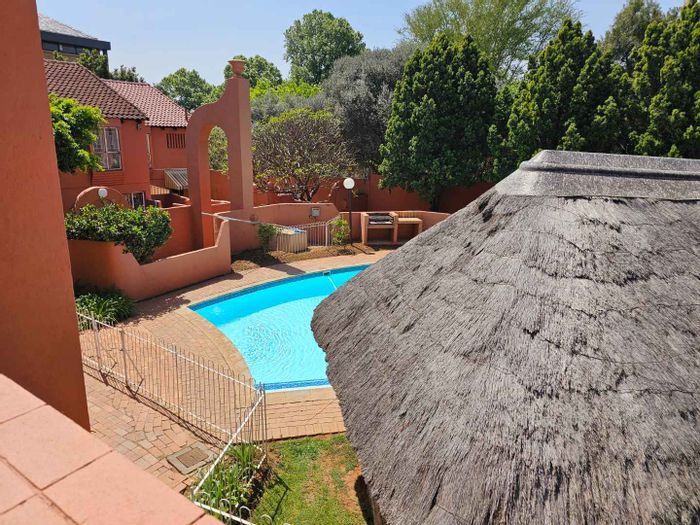 Enjoy leafy communal gardens, pool and braai lapa in Villa La Mancha, minutes from Brooklyn Mall and top schools—expansive under-roof patio overlooking the pool; two bedrooms, single garage.