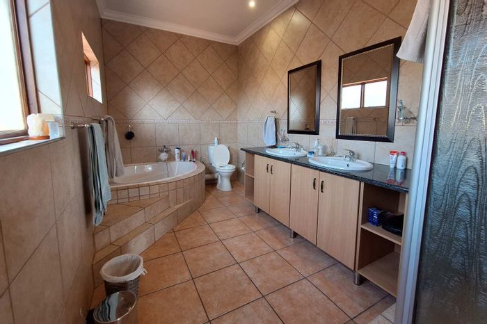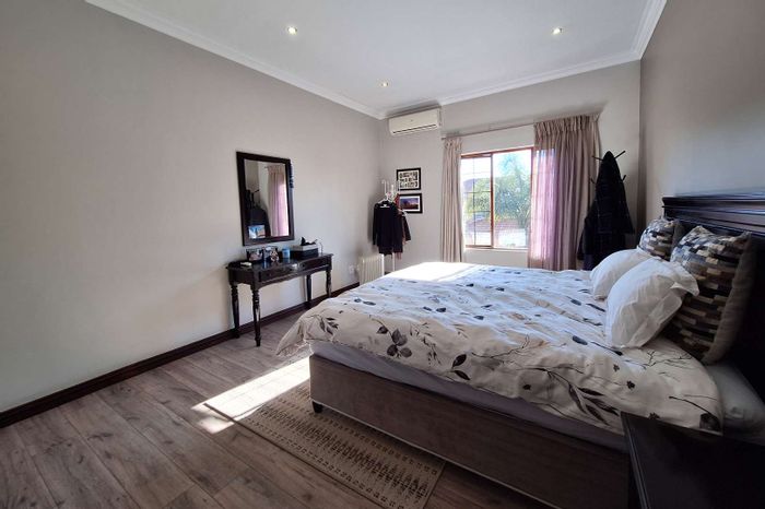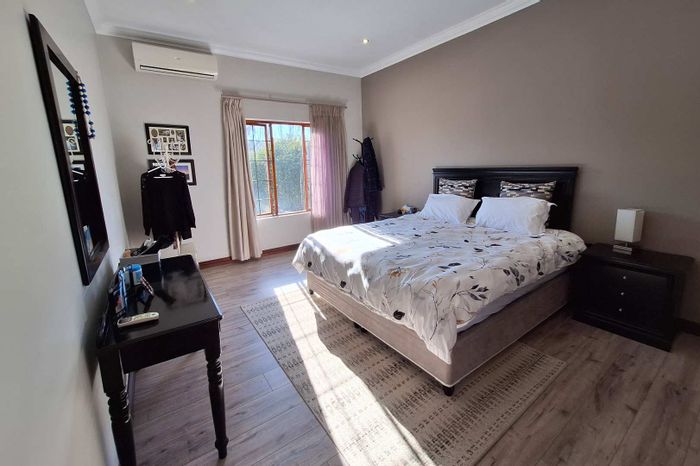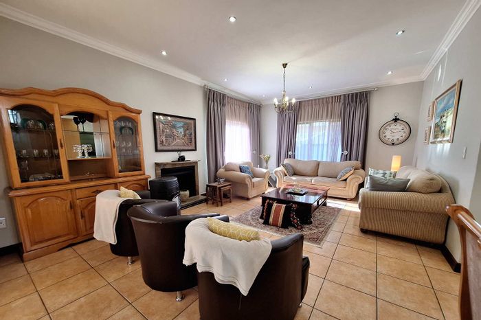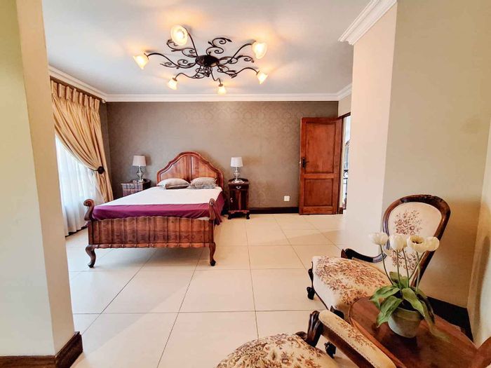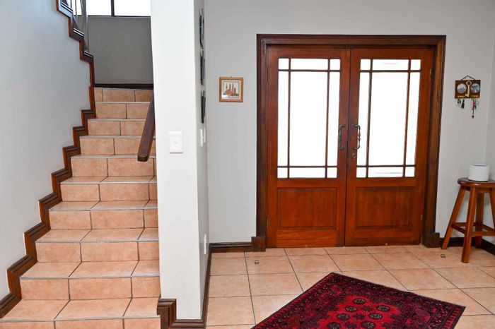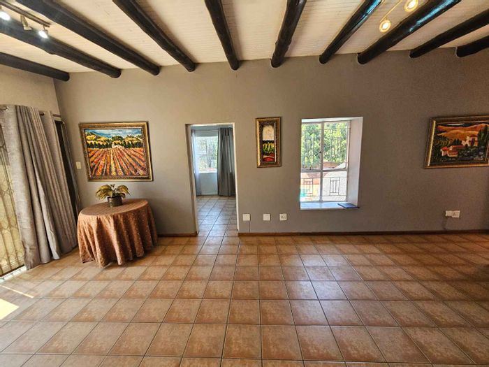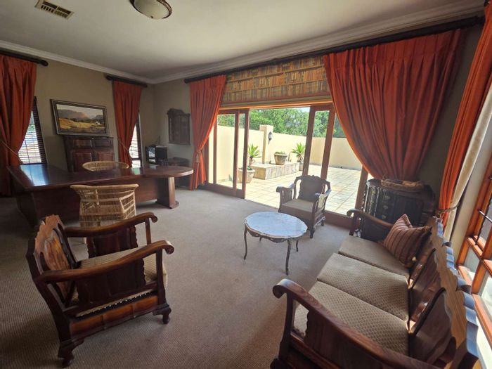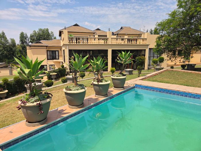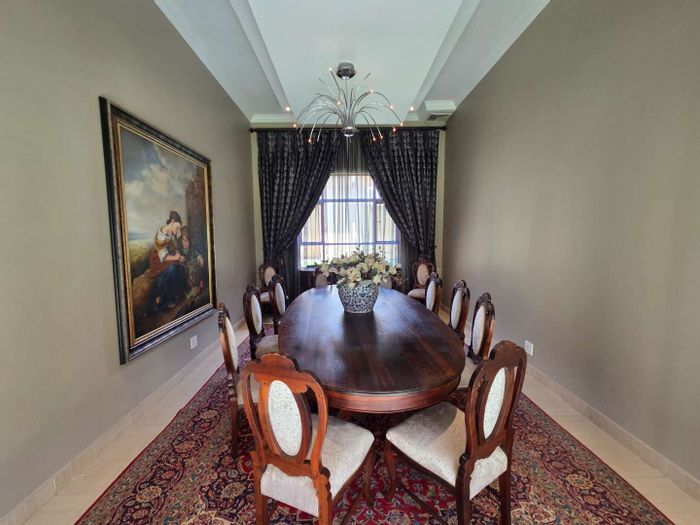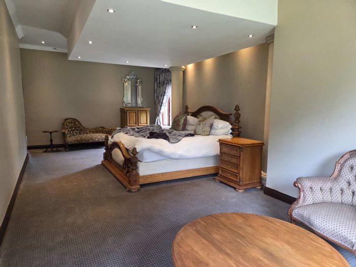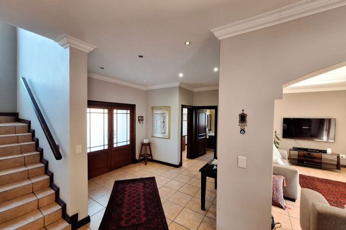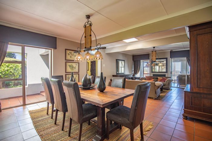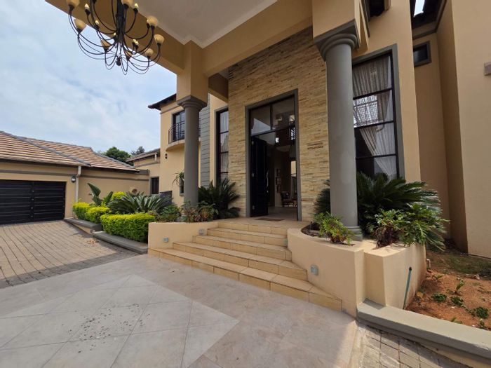Furnished mansion for gracious entertaining on a park-like Mooikloof stand with sweeping bushveld views, Lapa entertainment centre and wine cellar — five bedrooms, 4.5 baths, three garages.