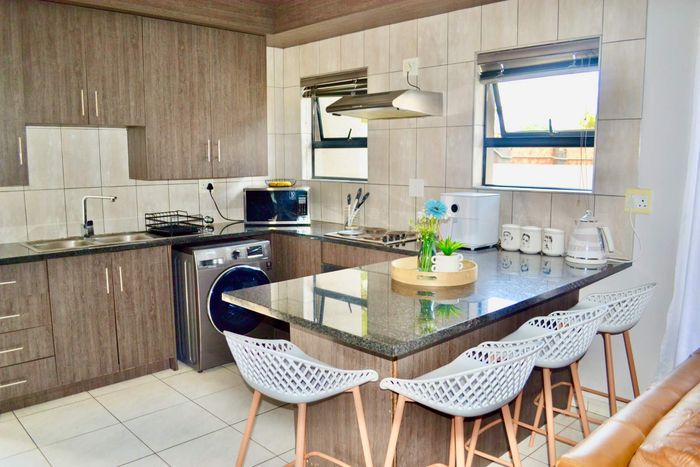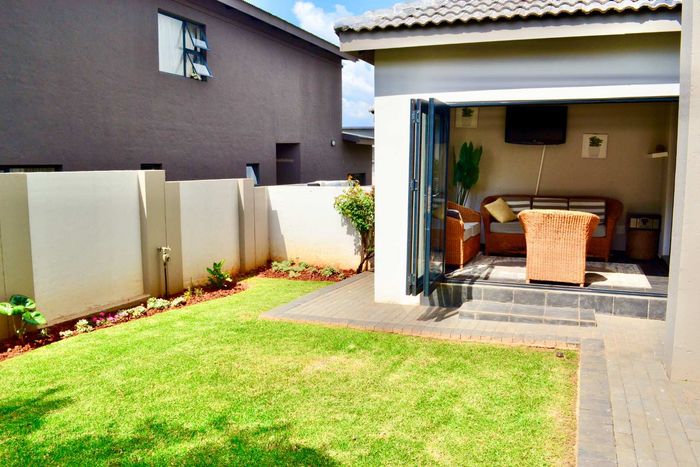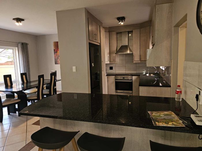 Enjoy secure estate living at Woodhill Golf Estate, Pretoria — golf-course ambiance, clubhouse dining and walking paths. Private patio and small garden; fully furnished duplex, 3 beds, 2 baths, double garage.