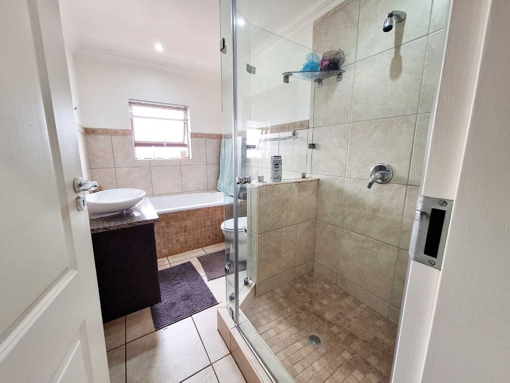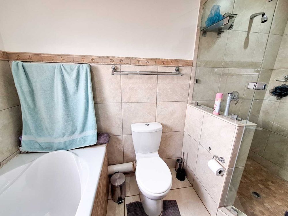 The property boasts four generously sized bedrooms, two being en-suite, each featuring beautiful cupboards. The master suite is a standout, offering a massive walk-in closet and a contemporary en-suite bathroom. In total, the house has three modern bathrooms and an additional guest loo for convenience.