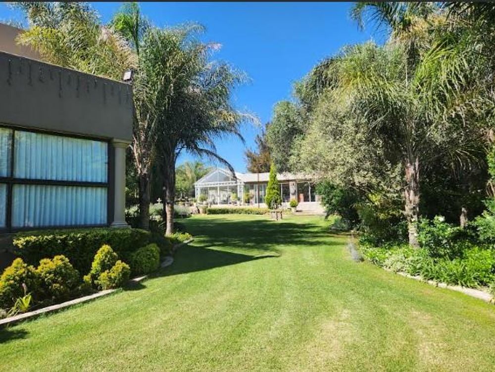 The property is graced with large trees and beautifully landscaped gardens, creating a picturesque setting. Practical features include three boreholes with a 20,000-liter storage capacity and an 80,000-liter dam. A 5kVA inverter supported by 8 solar panels and 3-phase Eskom power ensure energy efficiency.