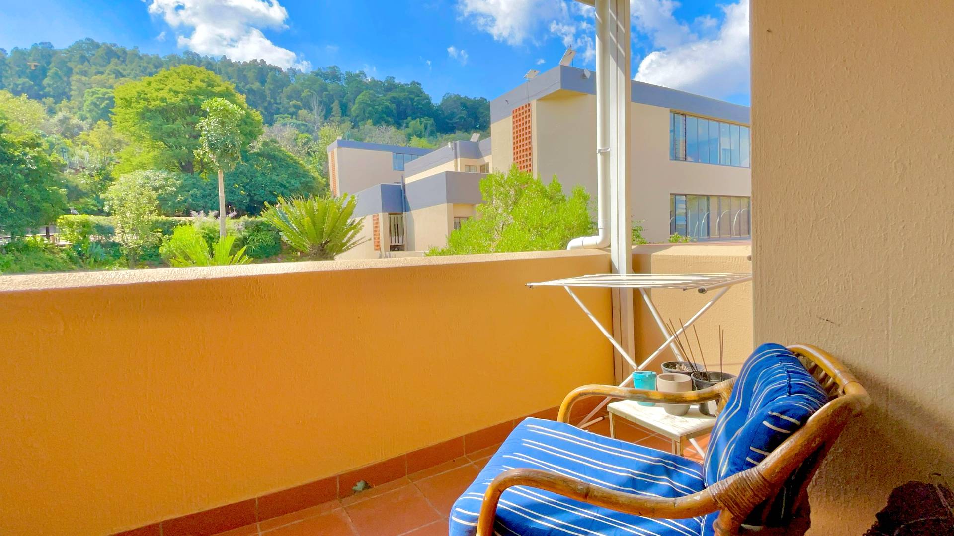 The unit is easily accessible via a few stairs or a convenient ramp leading to the first level. Upon entering, you're immediately greeted by expansive views of the well-maintained gardens. The kitchen is thoughtfully situated to the left, and straight ahead, sliding doors open onto a balcony that offers a tranquil retreat with picturesque garden views.