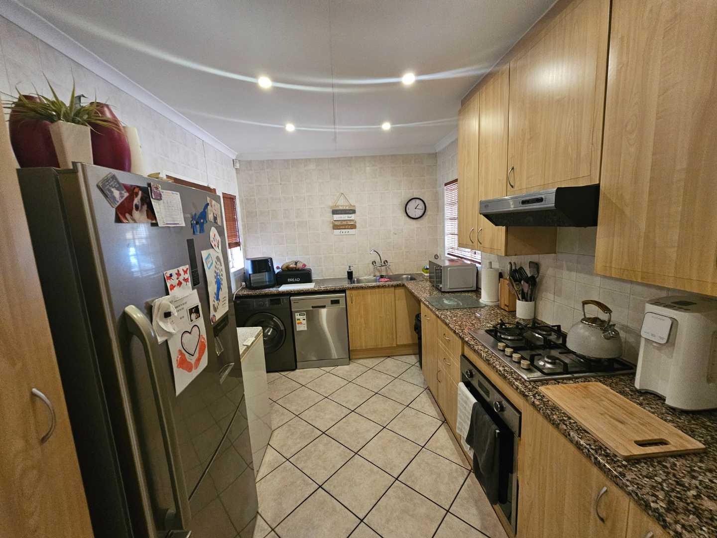 This inviting home includes a comfortable open-plan family/TV room and a dining room that seamlessly opens to a large under-roof braai room. Equipped with a built-in braai, this space is perfect for hosting gatherings while overlooking the sparkling pool and beautifully landscaped garden.